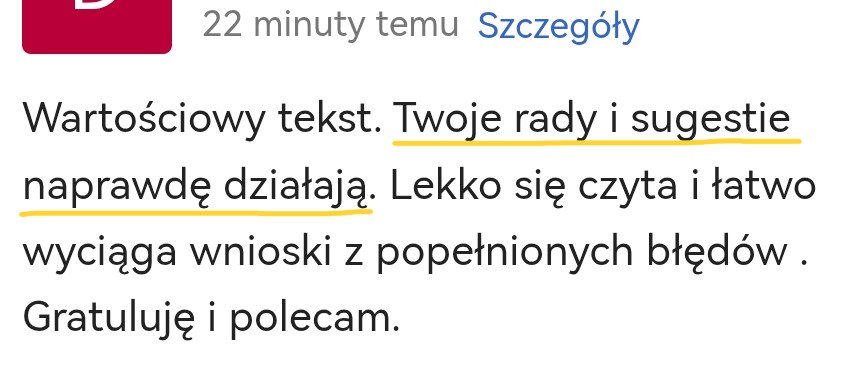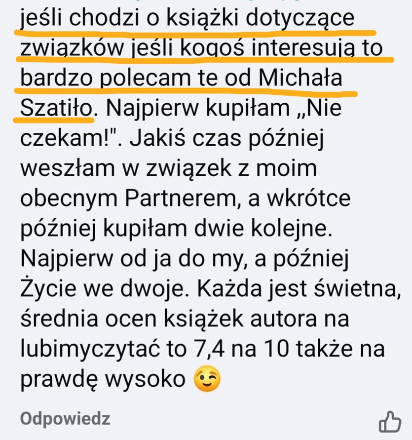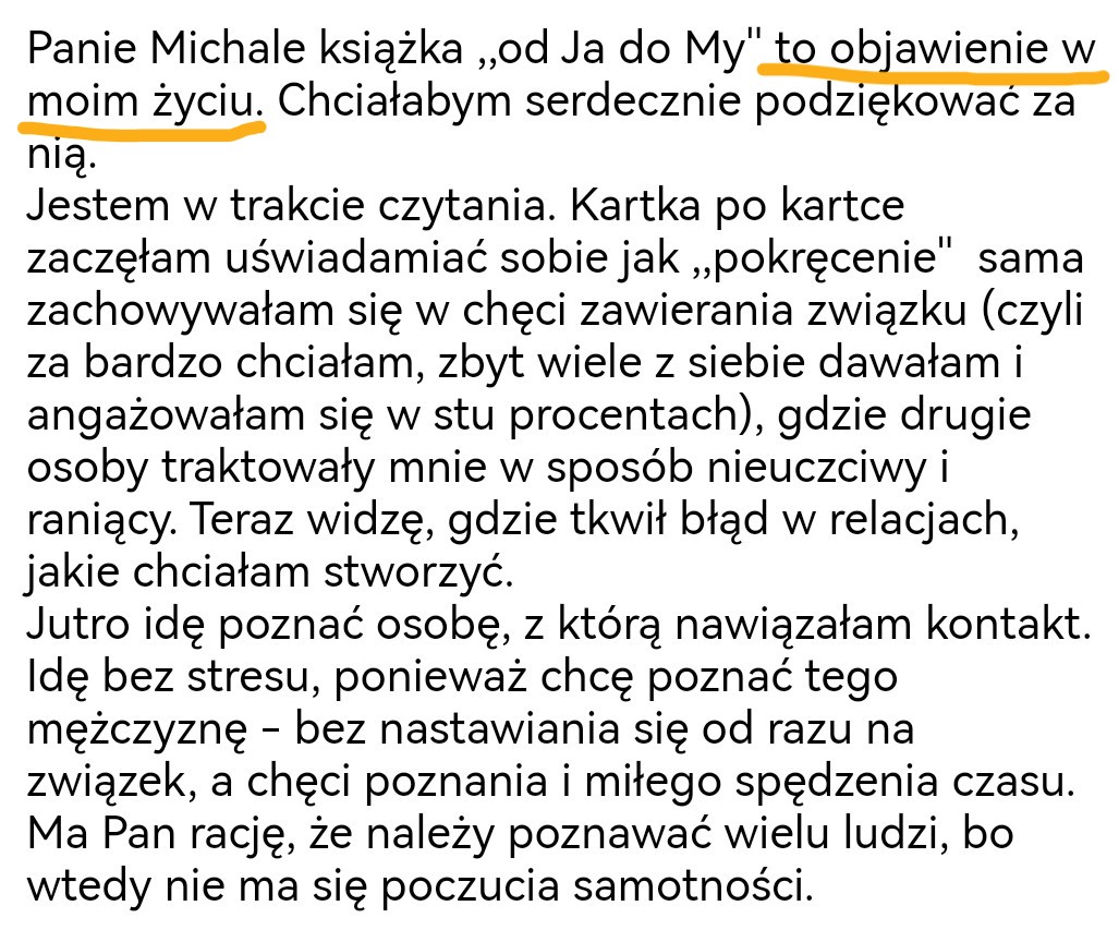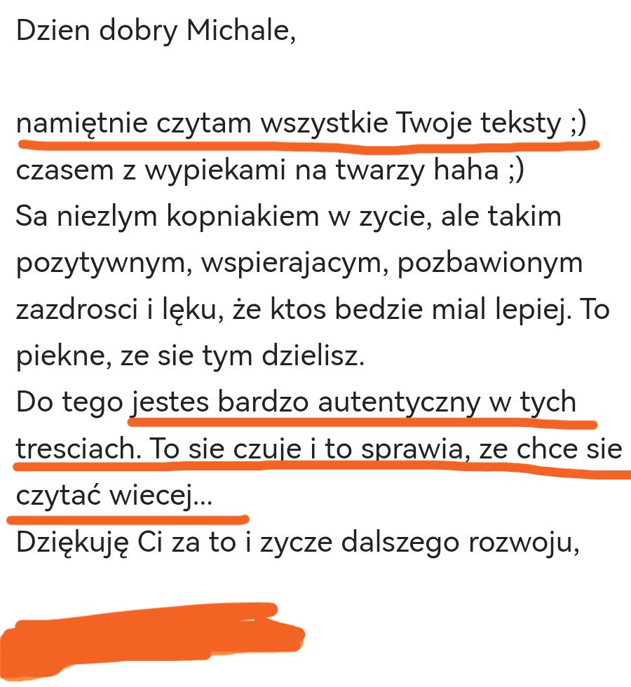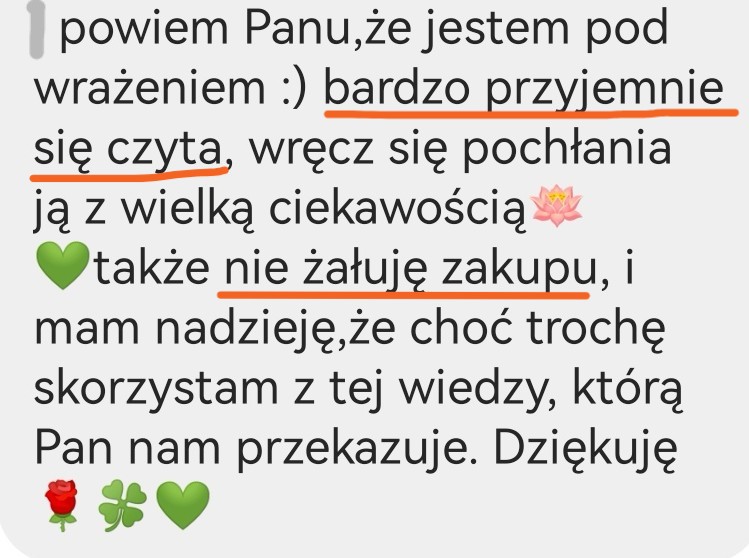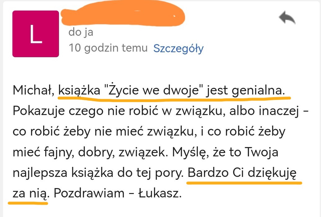 Chcę, żeby rzeczy, które tworzę robiły różnicę. Poniżej znajdziesz opinie osób, które korzystają z moich książek, kursów i darmowych treści.